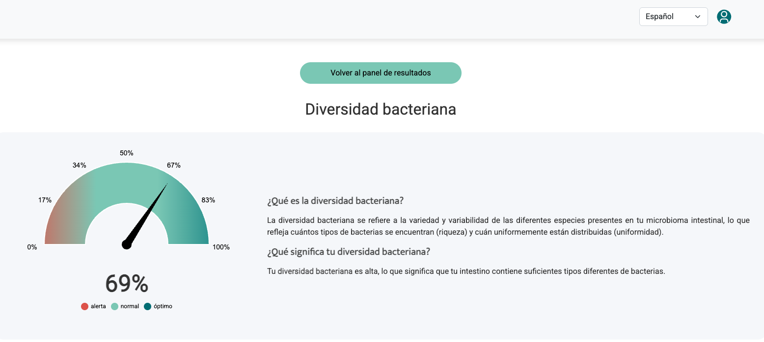Figura 4. Índice de diversidad microbiana (informe ejemplo Biomatest®).