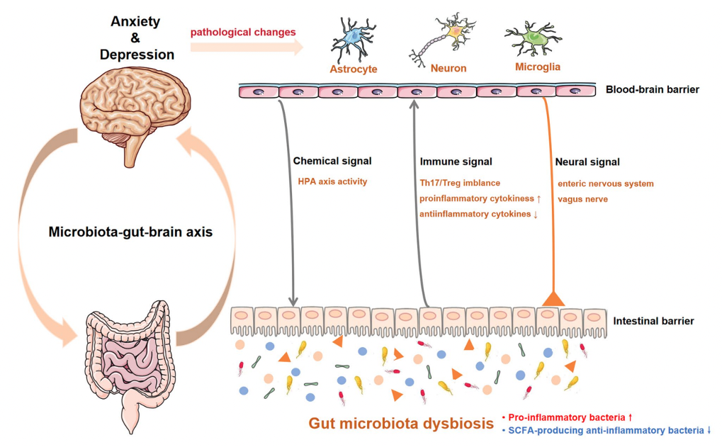 - Cao Y, Cheng Y, Pan W, Diao J, Sun L, Meng M. Gut microbiota variations in depression and anxiety: a systematic review. BMC Psychiatry. 2025 May 1;25(1):443. doi: 10.1186/s12888-025-06871-8. PMID: 40312666; PMCID: PMC12044767.